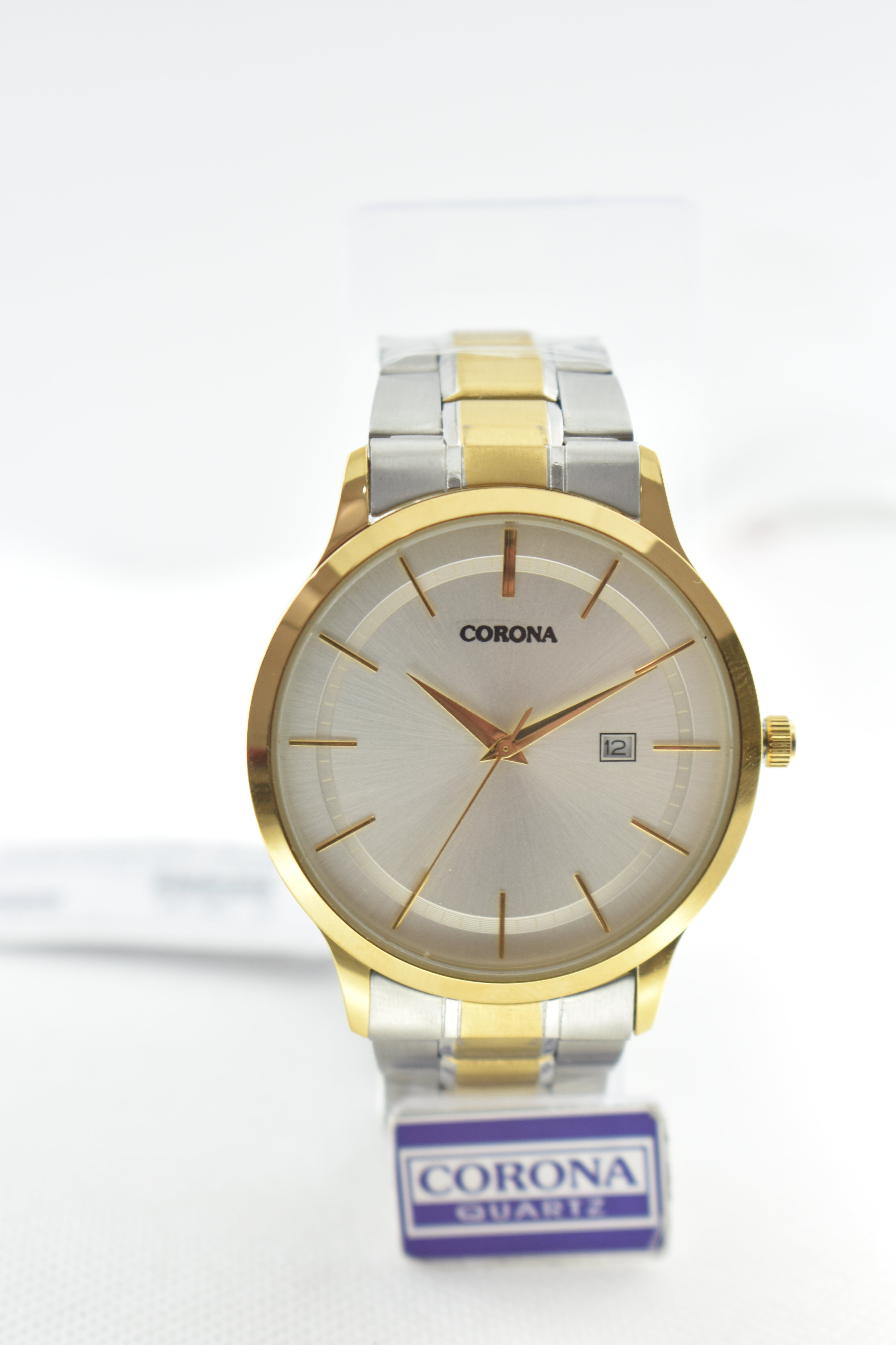 Presenting our Gold Two-Tone Plated Men's Wrist Watch, a harmonious blend of luxury and functionality. The opulent gold-plated case adorned with two-tone accents encases a captivating white dial, while boasting convenient day and date functions for practicality. Elevate your style with this exceptional timepiece, where opulence and usefulness unite in a statement of refined masculinity that's as elegant as it is functional.